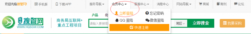 2、打開搜管網首頁【http://m.irislcn.com】點擊【會員中心】點擊立即登錄,如下圖