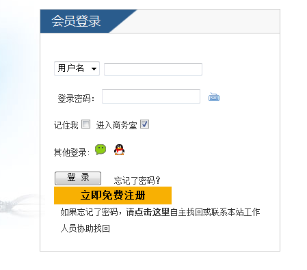 3、點擊立即登陸彈出頁面,填寫用戶名和密碼,勾選【進入商務室】操作如下圖: