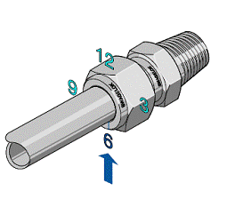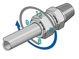 6.在卡套螺母擰緊一又四分之一轉(zhuǎn),它前進(jìn)了1/16inch(1.52mm),接頭完成了密封,抱緊管子的作用。