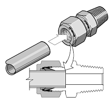 第一步:將管子插入接頭,確保管子端部達(dá)到接頭底部,并用手指擰緊卡套螺母。