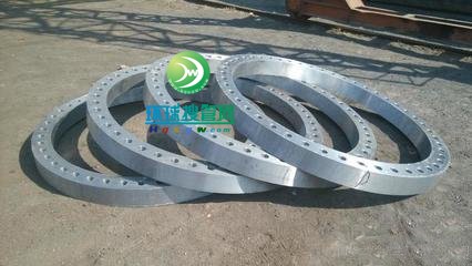 一個很大的大型法蘭產品生產出來了。很占用地方的。放倉庫里肯定不行,就要把這樣的大型法蘭放到露天處。放還不可以直接放到地上的。要放到靠墻的地方,上面用繩索固定住,而下面是要接地,不可以讓整個的大型法蘭的重量全部與地面接觸,也不可以完全靠著上面的繩索的力量吊住。這是因為,產品過大,重量過大,而材質是Q235碳鋼的,其實碳鋼的材質是很軟的。如果說是全著地兒了。整個產品的重要全壓到了一點。會讓上面的重量把產品的圓度破壞掉的。而如果全把重要集中在吊產品的繩索上,那繩索會吃不消的,也會發生變形,所以基于這些原因,今天文章中所說的就是超大型法蘭盤的理想的存放的最佳的一個狀態了。