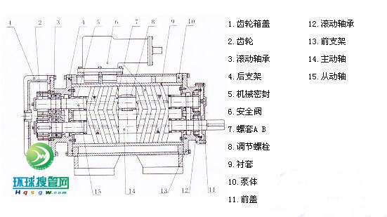 雙螺桿分為密封式和不密封式兩種,它通過相互嚙合、互不接觸的兩根螺桿來抽送液體。