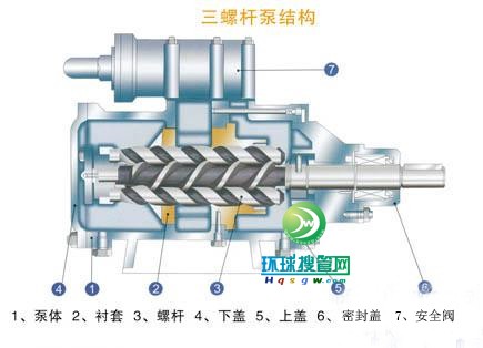 三螺桿泵利用螺桿的回轉進行液體的吸排。它的優點是結構堅實,容易保養。