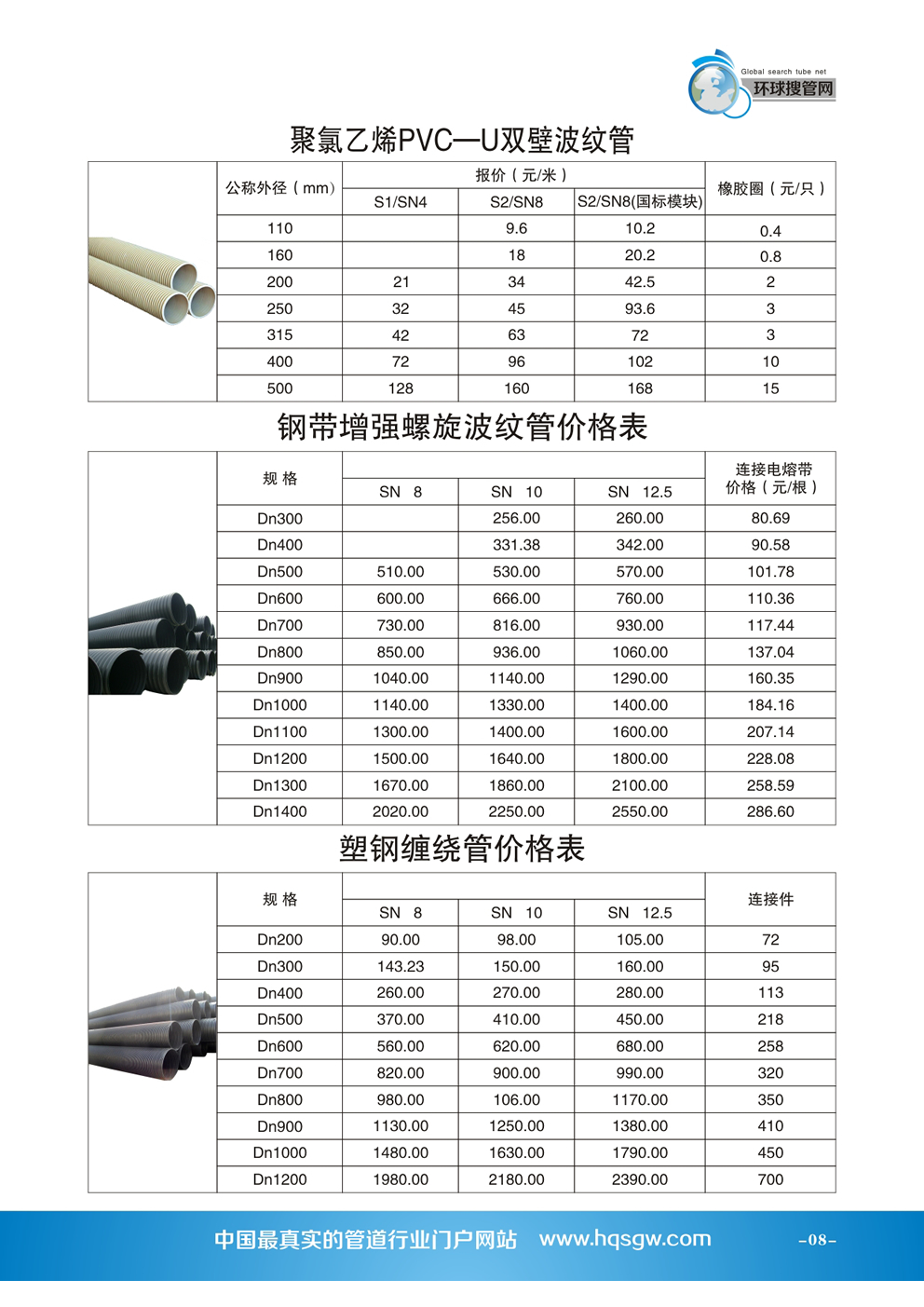 聚乙烯塑鋼纏繞管(SRWPE)是由鋼塑復合的異型帶材經螺旋纏繞焊接(搭接面上擠出焊接)制成,其內壁光滑平整,規格為DN200- DN2600mm。該種管材具有耐腐蝕、質量輕、安裝簡便、通流量大、壽命長(50年)等優點,可替代高能耗材質(水泥、鑄鐵、陶瓷等)制作的管材,屬環保型綠色產品。