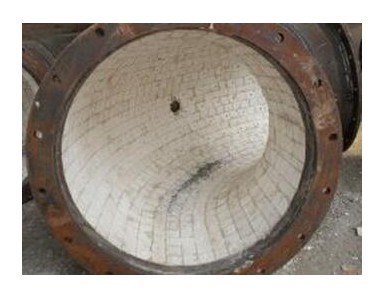 內襯層為剛玉陶瓷(a-AL2O3),莫氏硬度可達9.0相當于HRC90以上,耐磨壽命是淬火鋼的十倍甚至幾十倍。