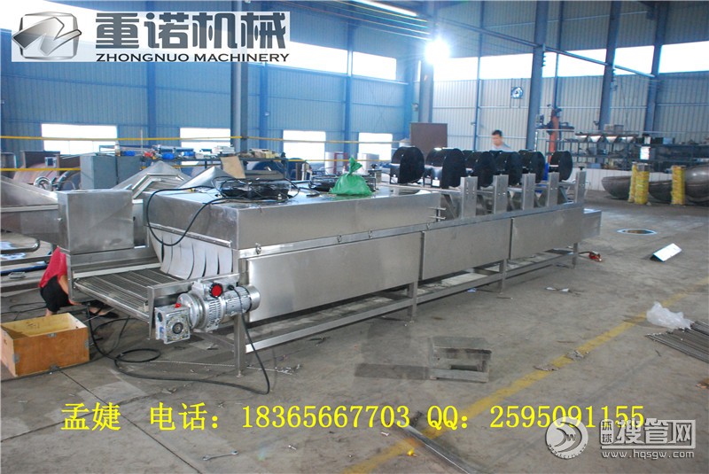 清洗風干線,快速風干機,軟包裝風干機用于滅菌后的高低溫肉制品、蔬菜制品等軟包裝產品滅菌后的除水工作,亦適用于蔬菜清洗后表面水的去除。通過多次翻身瀝水,及上部高壓強冷風吹,使軟包裝完全達到表面水珠吹干的效果(袋面皺紋間的存水也能干)。此設備與殺菌機相連并速度同步,每臺風機功率:0.75KW,設備環保節能。