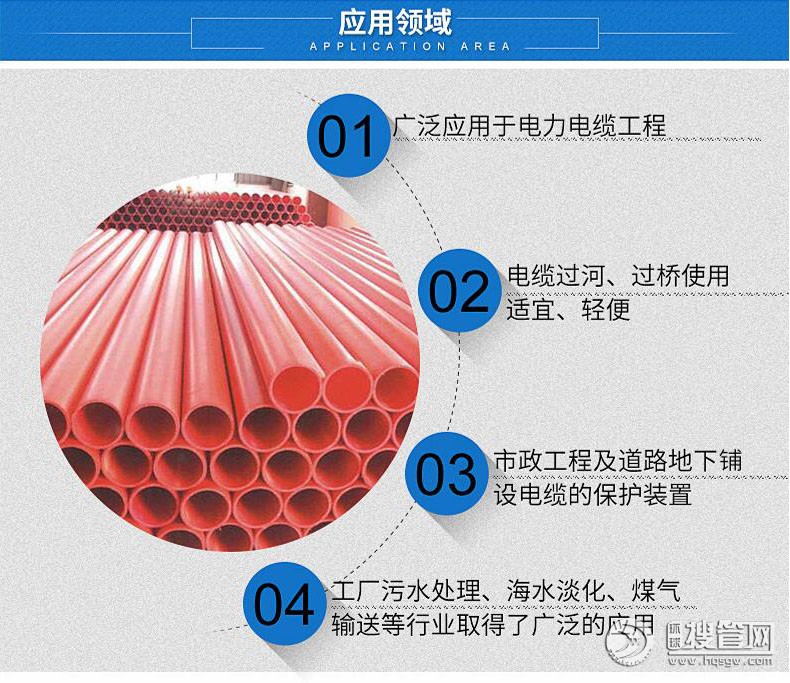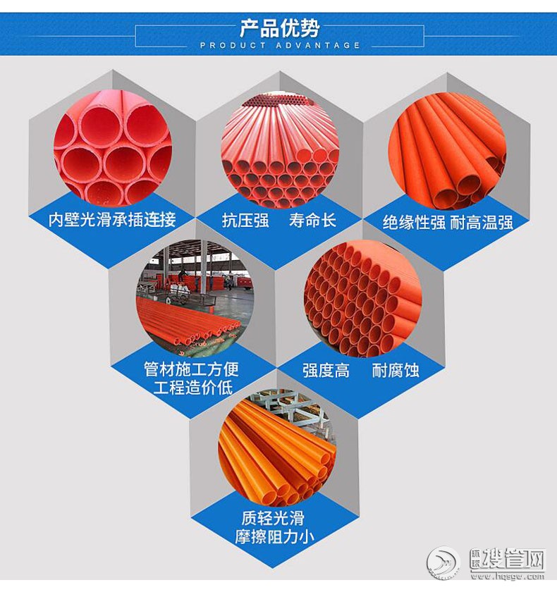 抗高溫、耐外壓的特點,適用于10KV以上高壓輸電線電纜排管管材。110mm~中250mm,分為普通型和加強型。普通型適用于開挖鋪設施工和非開挖穿越施工埋深小于4M的工程;加強型適用于非開挖穿越施工埋深大于4M的工程。本產品通過國家化學建材測試中心的檢測,取得了較好的社會效益和經濟效益。