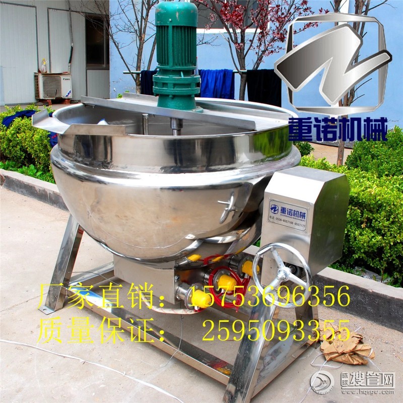肉制品夾層鍋 蒸汽夾層鍋 肉制品蒸煮鍋豆漿,早上喝上一口,香味沁人心脾,尤其是在這冷風嗖嗖的冬天里,熱豆漿喝下,胃里暖暖的,真是養生的最佳飲品。但是一個大型的餐廳或是豆漿的供應商要怎么做才能不但保持豆漿的香醇還能夠大批量的供應呢?這個時候就要用到夾層鍋了,高溫夾層鍋,有立式的、可傾式的,有帶攪拌的和不帶攪拌的;要是蒸煮豆漿的話肯定要優先選擇帶攪拌的,攪拌尺與鍋體的充分接觸,確保了攪拌無死角,不糊鍋,工作效率高。做出來的豆漿入口絲滑,豆香濃郁,買夾層鍋,就來諸城重諾。