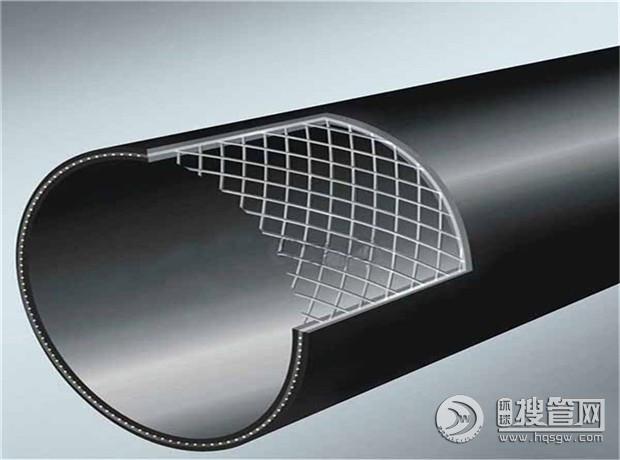 鋼絲網骨架塑料聚乙烯復合管是以高強度鋼絲左右螺旋纏繞成型的網狀骨架為增強體,以高密度聚乙烯(HDPE)為基體,并用高性能的黏結樹脂層將鋼絲骨架內外層高密度聚乙烯緊密的連接在一起.該黏結樹脂是一種高性能黏結材料,屬于HDPE改性材料,與HDPE在加熱的條件下能完全融為一體,同時,其極性鍵與鋼有極強的黏結性能.由于黏結樹脂的使用,成功的解決了鋼,HDPE間無連接因子的問題,具有優良的復合效果.