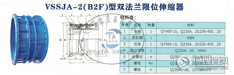 VSSJA-2型雙法蘭限位伸縮器是公稱通徑為DN50mm—DN3000mm的一款伸縮量大、安裝方便快捷的伸縮器械。