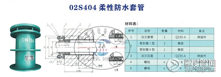 02S404型柔性防水套管廣泛用于建筑、化工、石油、自來水廠、污水處理、核電工程等單位。