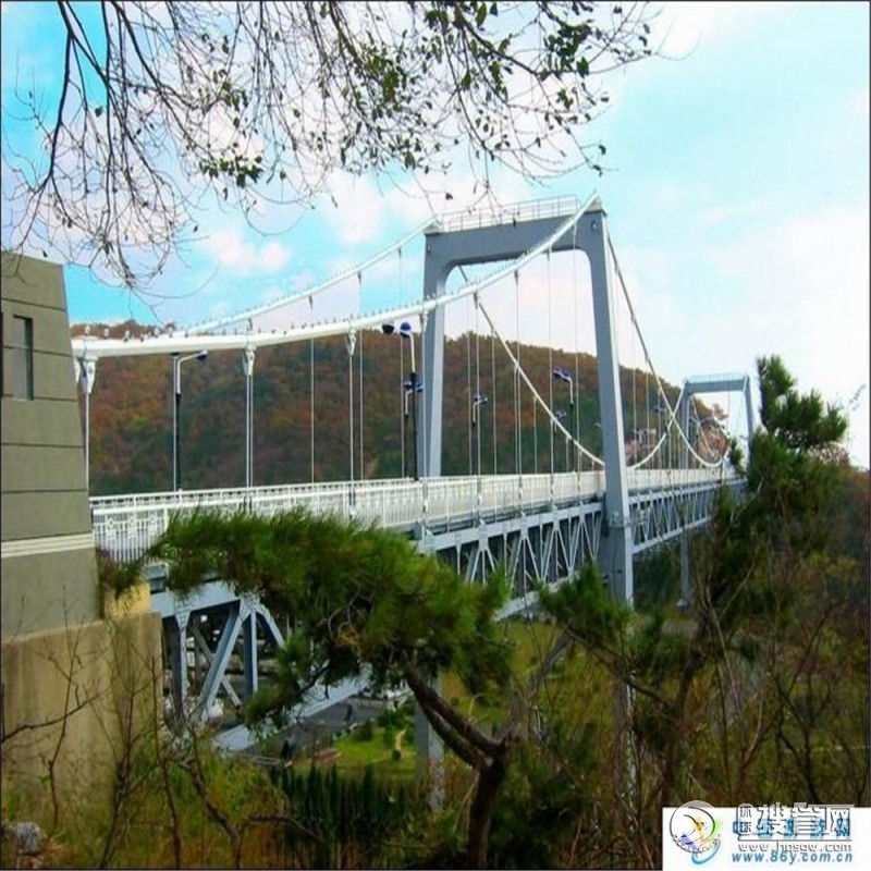 吊索也稱吊桿,是將加勁梁等恒載和橋面活載傳遞到主纜索的主要構件。吊索可布置成垂直形式的直吊索或傾斜形式的斜吊索,其上端通過索夾與主纜索相連,下端與加勁梁連接。吊索與主纜索連結有兩種方式:鞍掛式和銷接式。兩種方式各有所長。吊索與加勁梁連結也有兩種方式:錨固式和銷接固定式。錨固式連結是將吊索的錨頭錨固在加勁梁的錨固構造處。銷接固定式連結是將帶有耳板的吊索錨頭與固定在加勁梁上的吊耳通過銷釘連結。吊索宜采用有繩芯的鋼絲繩制作,二根或四根一組;兩端均為銷接式的吊索可采用平行鋼絲索束作為吊索。