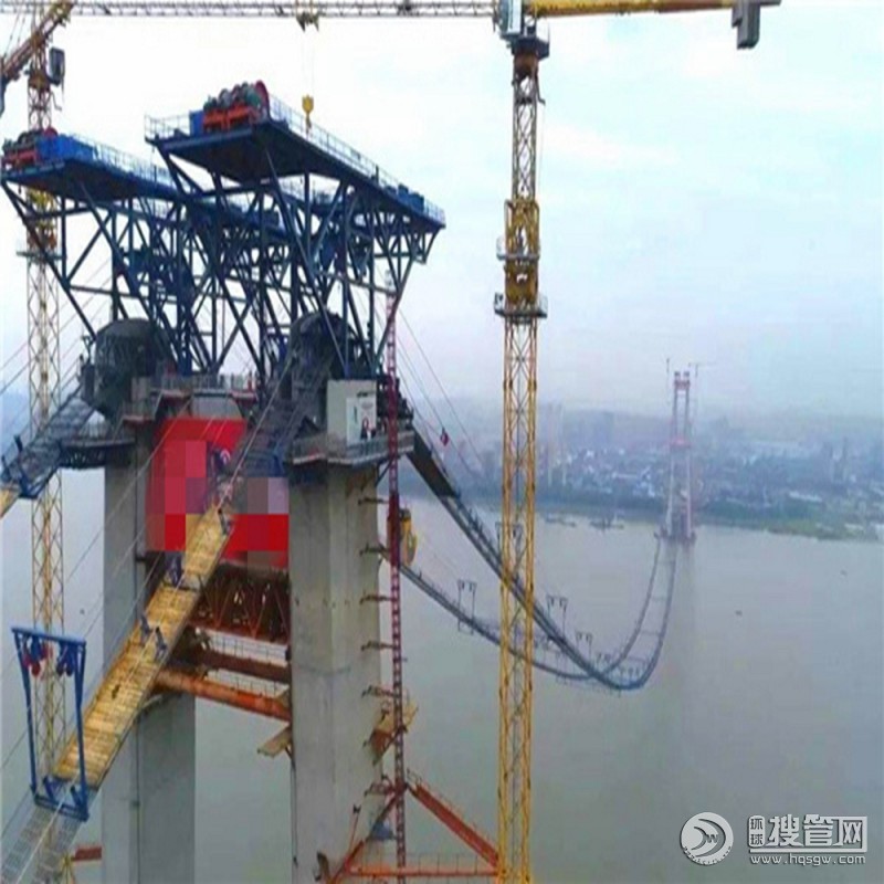 索鞍是支承主纜的重要構件,其作用是保證主纜索平順轉折;將主纜索中的拉力在索鞍處分解為垂直力和不平衡水平力,并均勻地傳至塔頂或錨碇的支架處。索鞍可分為塔頂索鞍和錨固索鞍。塔頂索鞍設置在橋塔頂部,將主纜索荷載傳至塔上;錨固索鞍(亦稱散索鞍),設置在錨碇的支架處,主要作用是改變主纜索的方向,把主纜索的鋼絲繩束在水平及豎直方向分散開來,并將其引入各自的錨固位置。為了減少塔頂索鞍處鋼絲的彎曲次應力,塔頂索鞍彎曲半徑一般為主纜索直徑的8—12倍;而散索鞍必須考慮鋼絲繩束的水平曲率半徑和豎直曲率半徑,以確定索鞍合理形狀。索鞍通常采用鑄焊組合件組成,大型組件采用分塊制作,安裝后通過螺栓或焊接連成整體。