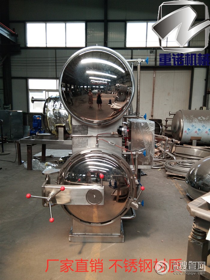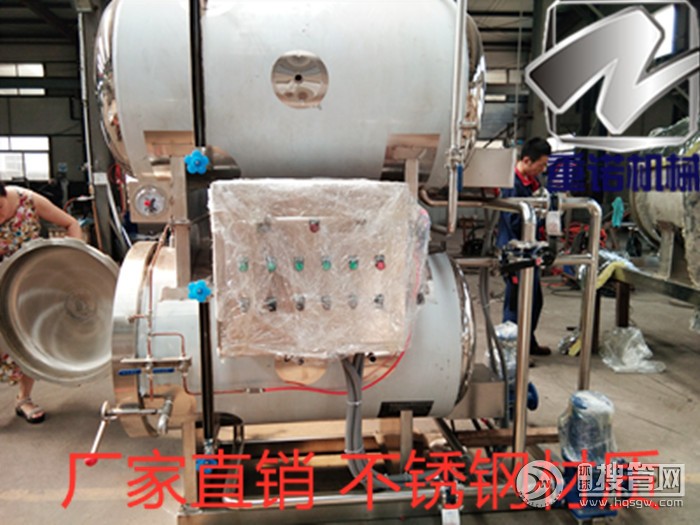 醬肘子殺菌鍋,并聯殺菌鍋,玉米羹殺菌鍋電汽兩用殺菌鍋特點:電汽兩用殺菌鍋汽源可由電或蒸汽來供給,用電時可預先設定到所需溫度,通過按控制箱進行自動控溫,低于一定溫度時可自動加溫,到設定溫度時自動停止,從而確保了在殺菌時溫度的準確性。用蒸汽時可通過鍋爐蒸汽直接進行升溫殺菌。1.由電加熱蒸汽發(fā)生器代替鍋爐,適合環(huán)保要求,產量較小的食品藥品生產企業(yè),尤其適合產品研發(fā)。2. 玉米羹殺菌鍋殺菌溫度、殺菌壓力、殺菌時間、蒸汽發(fā)生器由控制柜自動控制,其余過程由人工控制。3. 有3道安全連鎖裝置。4. 電加熱功率可選,以適合用戶電網容量的不同。5.可以選擇蒸汽式殺菌或熱水循環(huán)式殺菌。把熱水罐事先加熱到所需溫度,通過循環(huán)水泵把鍋內熱水進行循環(huán)加溫,使鍋內產品在熱水噴淋和蒸汽的條件下進行高溫滅菌,使產品能保持原有的色澤、口味營養(yǎng)成分,且殺菌時間能提高一半的效率,同時節(jié)約能源