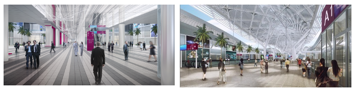 項目一期占地面積為121.4萬㎡,一期總建筑面積達(dá)160萬㎡,室內(nèi)展覽面積為40萬㎡。全部建成后,室內(nèi)展覽總面積將達(dá)到50萬㎡,將成全球max的展館。
