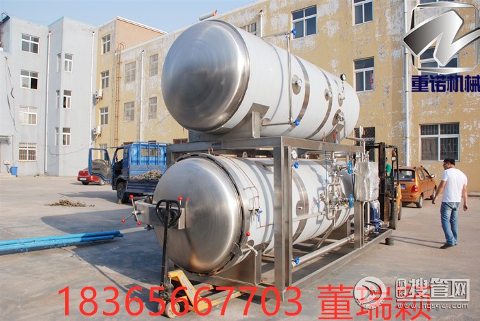 1在外層鍋內(nèi)加適量的水,將需要滅菌的物品放入內(nèi)層鍋,蓋好鍋蓋并對稱地扭緊螺旋。 2、 加熱使鍋內(nèi)產(chǎn)生蒸氣,當(dāng)壓力表指針達(dá)到 33.78kPa時,打開排氣閥,將冷空氣排出,此時壓力表指針下降,當(dāng)指針下降至零時,即將排氣閥關(guān)好。 3、 臘腸高溫殺菌鍋繼續(xù)加熱,鍋內(nèi)蒸氣增加,壓力表指針又上升,當(dāng)鍋內(nèi)壓力增加到所需壓力時,將火力減小,按所滅菌物品的特點(diǎn),使蒸氣壓力維持所需壓力時間,然后將滅菌器斷電或斷火,讓其自然冷后再慢慢打開排氣閥以排除余氣,然后才能開蓋取物 。